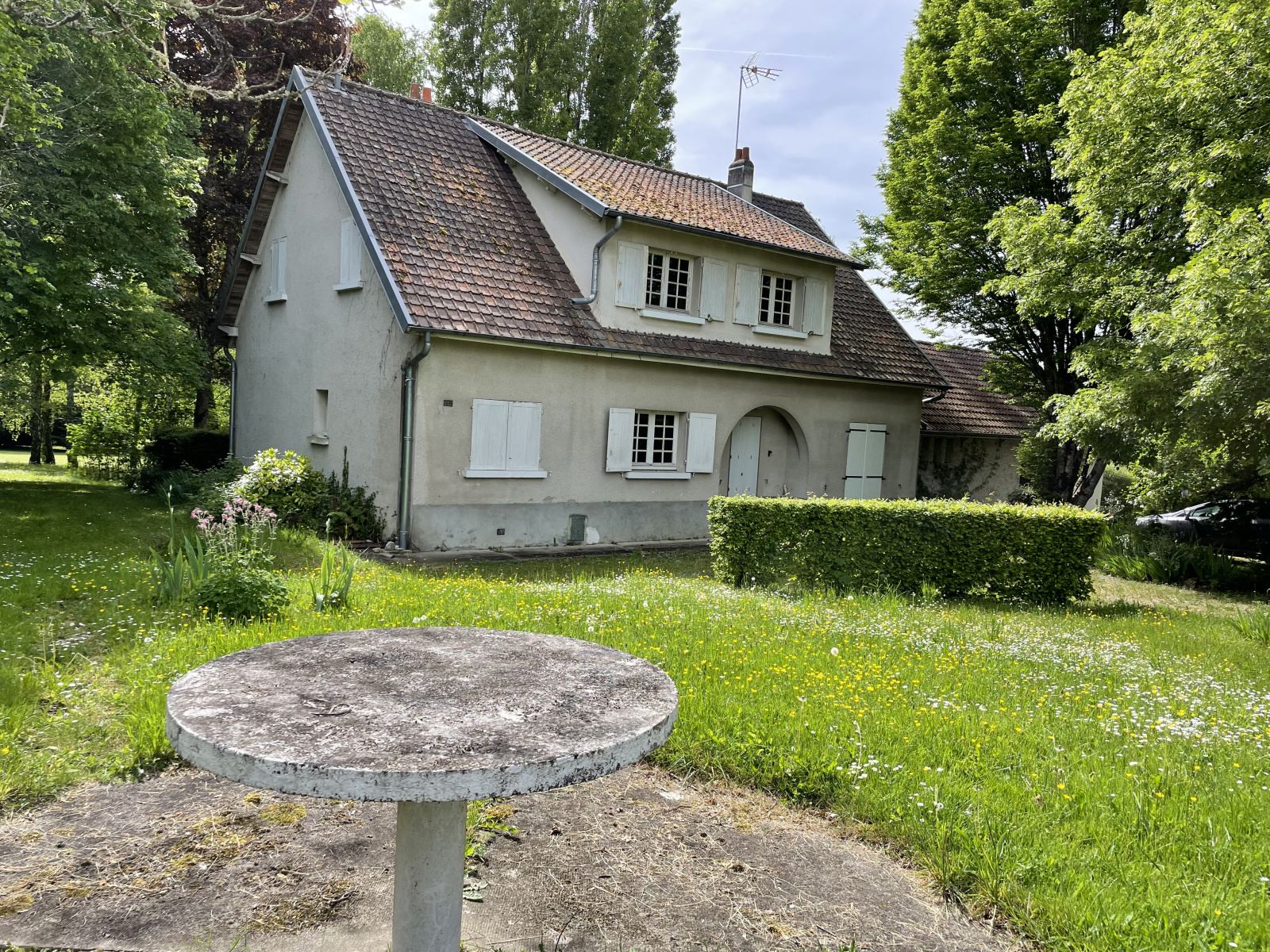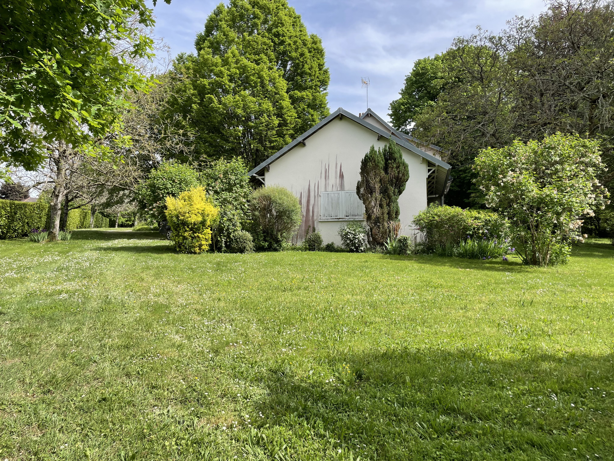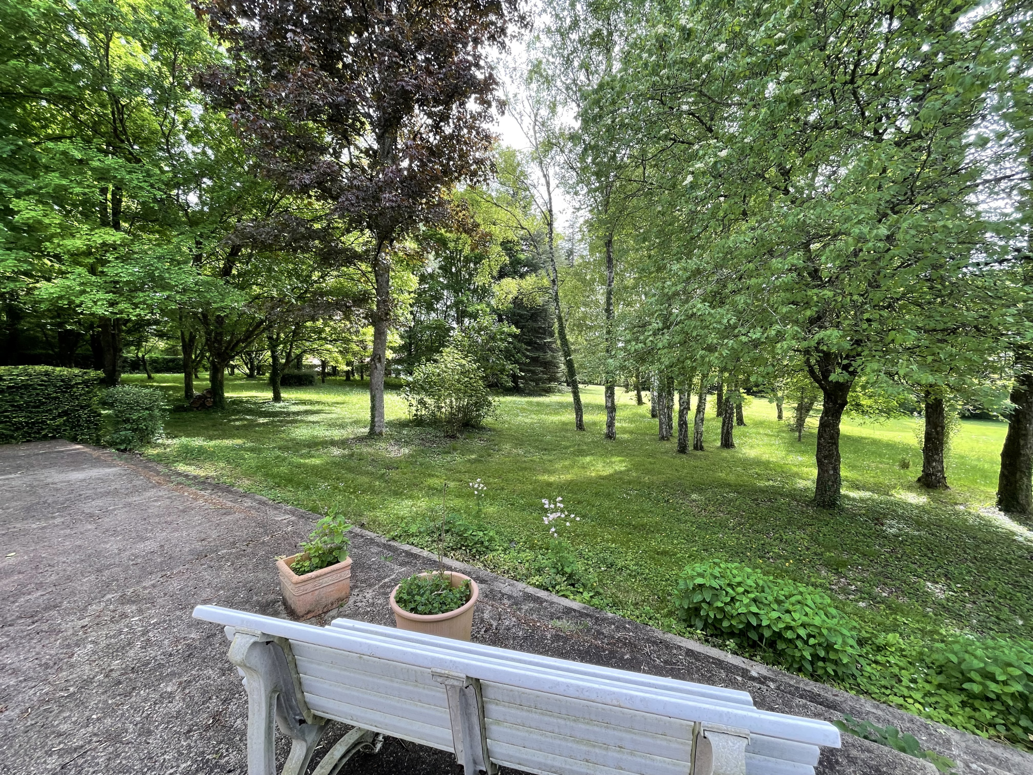 En annexe vous disposez d'un garage spacieux de 44 m², parfait pour deux véhicules et espace de rangement. Le parc entièrement arboré mesure 13 530 m².
